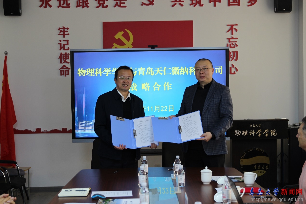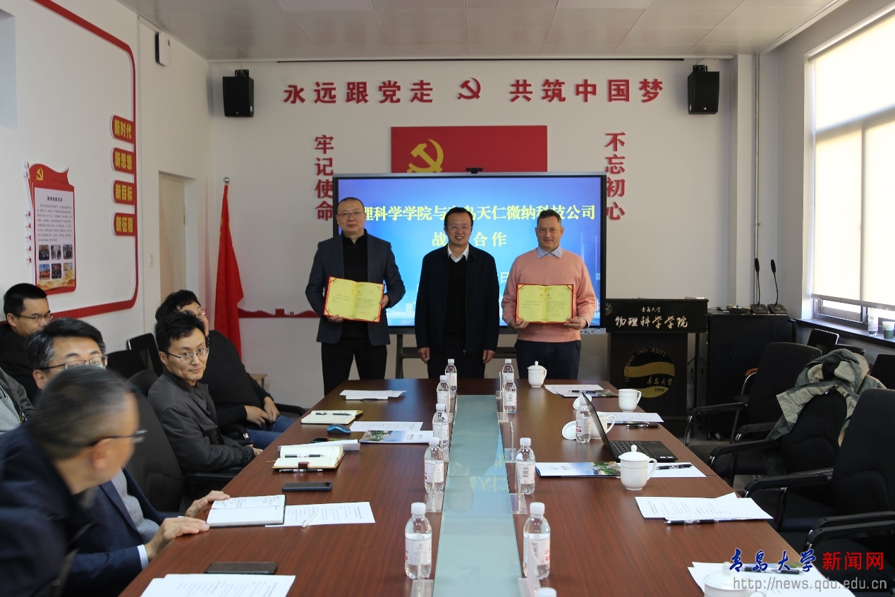 随后,物理科学学院与青岛天仁微纳科技有限公司签署了产学研合作协议,郝伟为冀然博士和Massimo Tormen博士颁发了beat365在线唯一官网客座教授聘书。