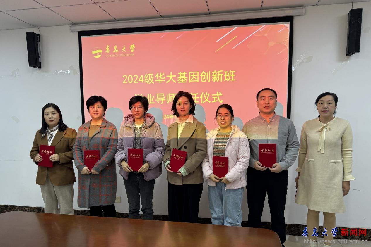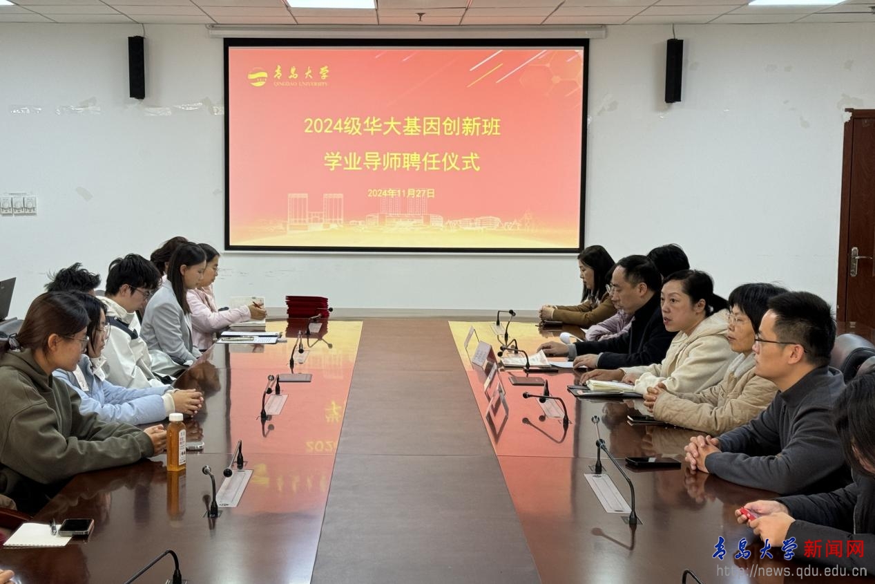 新闻网讯 11月27日上午,基础医学院在医学综合楼A215会议室举行2024级华大基因创新班师生座谈会暨学业导师聘任仪式。基础医学院院长张蓓、党委副书记章敏、副院长李尚勇、副院长狄国虎、学业导师代表和2024级华大创新班全体学生出席,会议由李尚勇主持。