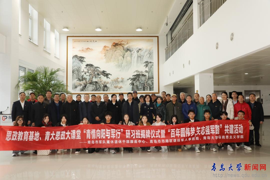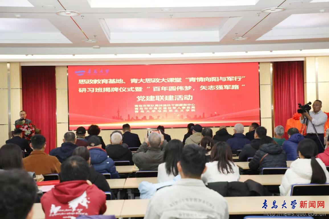 新闻网讯 12月12日下午,马克思主义学院、青岛市军队离休退休干部服务中心、青岛市市南区退役军人事务局在beat365在线唯一官网会议中心举行“思政教育基地”和“青大思政大课堂‘青情向阳与军行’研习基地”揭牌仪式,并开展“百年圆伟梦,矢志强军路”党建共建活动。青岛市军队离休退休干部服务中心党委副书记、副主任秦咏梅,市南区退役军人事务局党组书记、局长宋吉胜,beat365马克思主义学院党委书记王传永出席活动。活动由马克思主义学院副院长张义生主持。
