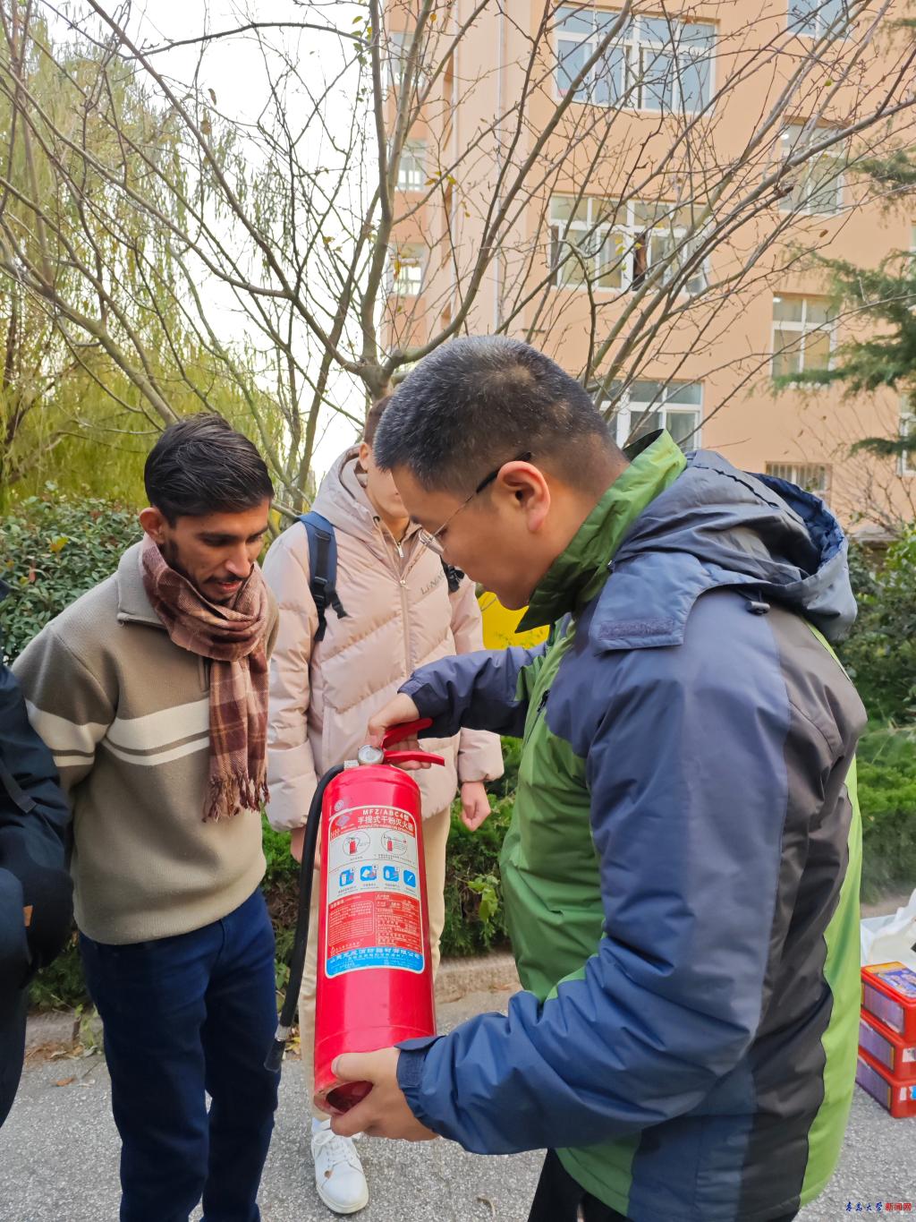 新闻网讯 12月12日下午,国际教育学院联合安全管理处组织在校留学生开展了消防演练及安全教育。安全管理处防火安全科的老师首先讲解了灭火器和灭火毯的正确使用方法。随后留学生在专业老师的指导下进行灭火器实际操作演练。