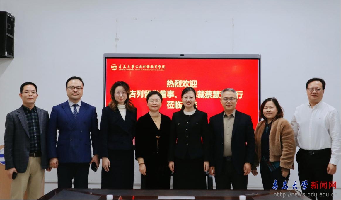 新闻网讯 12月24日下午,金吉列留学董事兼副总裁蔡慧芳、副总裁齐亚静、副总裁黄帅、渠道经理杨宝花到访公共外语教育学院。公共外语教育学院党委书记甄淑华、院长国林祥、副院长陈安榕、副院长佴云国等出席交流活动。国林祥主持交流会。