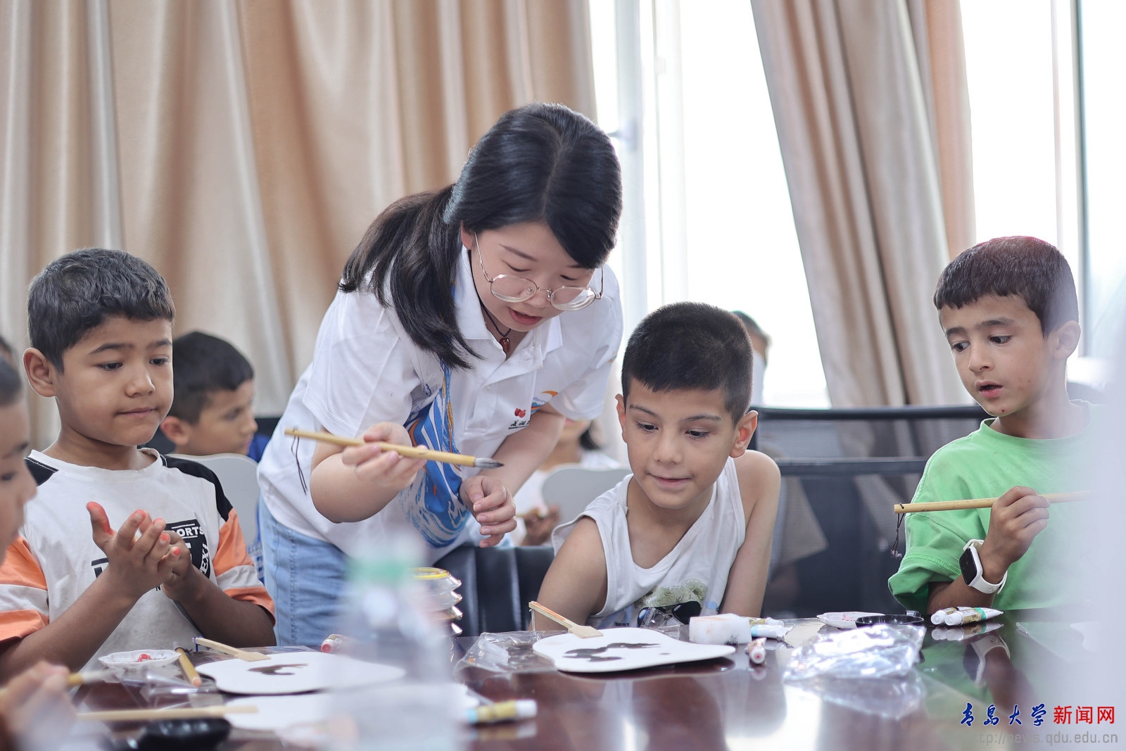 2024年8月,beat365在线唯一官网艺术学院“美润昆仑”2024新疆乡村美育振兴民族团结实践团先后抵达和田地区于田县、克孜勒苏柯尔克孜自治州的阿图什市,深入当地12所小学及两个社区开展实践活动。实践团活动内容丰富,涵盖普通话推广、古诗词鉴赏、书法体验、民间美术实践等课程。通过汉字书法课、传统非遗体验、特色手工艺品制作等美育浸润行动,让当地少数民族同胞在感受中华优秀传统文化魅力的同时,将普通话推广沁润他们的心田。为文化润疆贡献青春蓬勃力量。