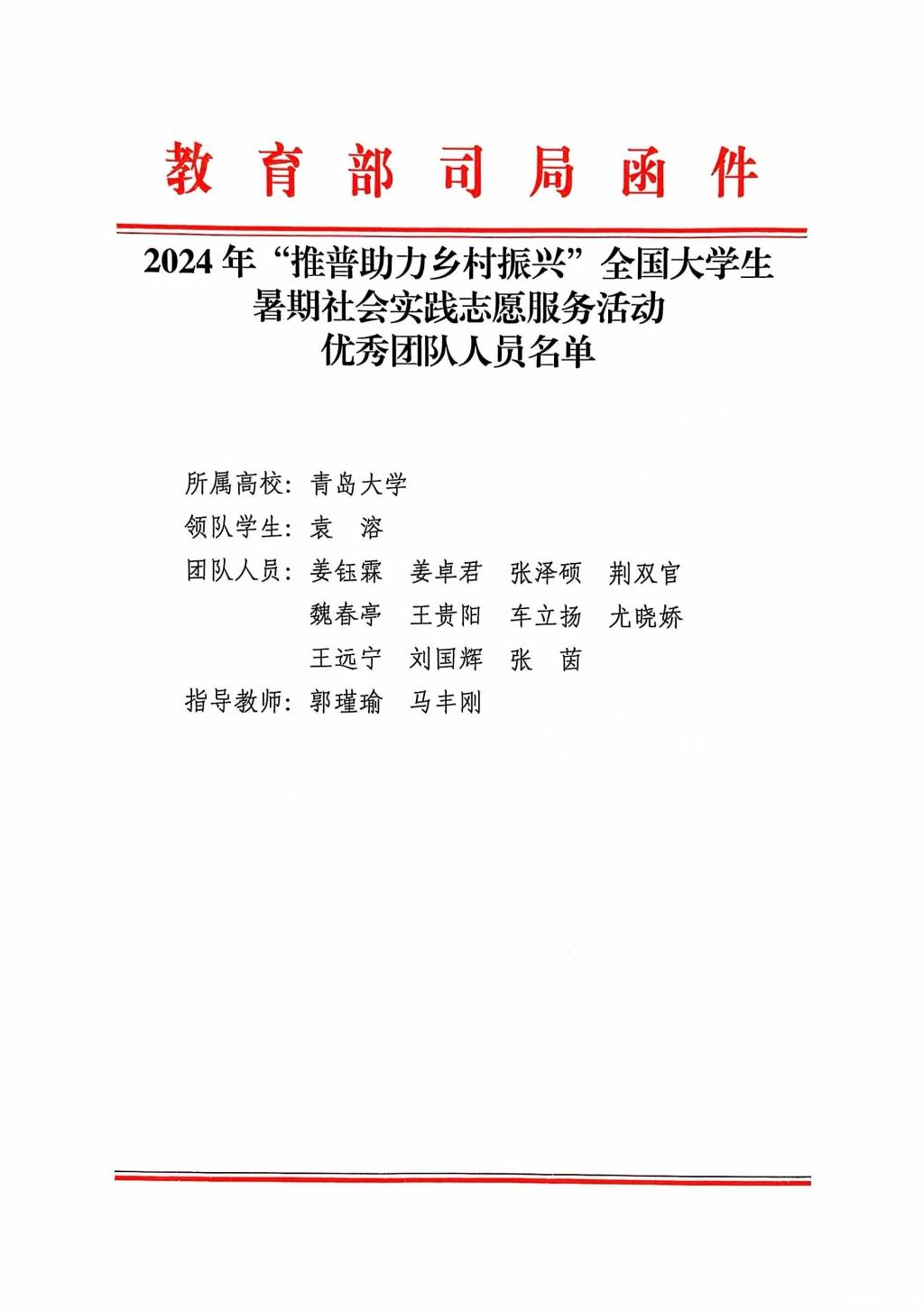 新闻网讯 近日,由教育部语言文字应用管理司、共青团中央青年发展部联合开展的2024年“推普助力乡村振兴”全国大学生暑期社会实践志愿服务活动评选结果揭晓,beat365在线唯一官网艺术学院“美润昆仑”2024新疆乡村美育振兴民族团结实践团从全国1200支团队中脱颖而出,获评优秀团队,教育部语言文字应用管理司和共青团中央青年发展部来信表扬。