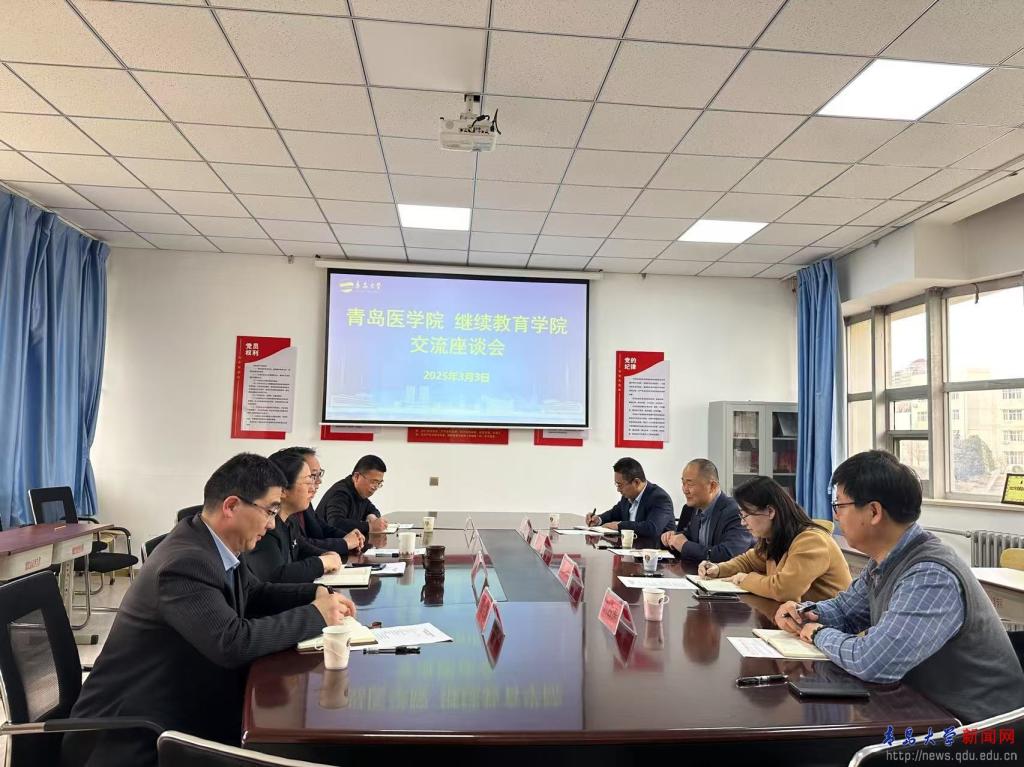 新闻网讯 3月3日下午,青岛医学院和应用技术学院、继续教育学院在金家岭校区行正楼310会议室召开专题交流座谈会,围绕“扩大学历继续教育招生规模”和“拓展医学教育培训业务”两个议题展开深入研讨。青岛医学院党委副书记、第一临床医学院党委书记王有全,青岛医学院常务副院长李冰,应用技术学院党委书记张燕、继续教育学院院长耿宝福等学院领导参加,会议由耿宝福主持。