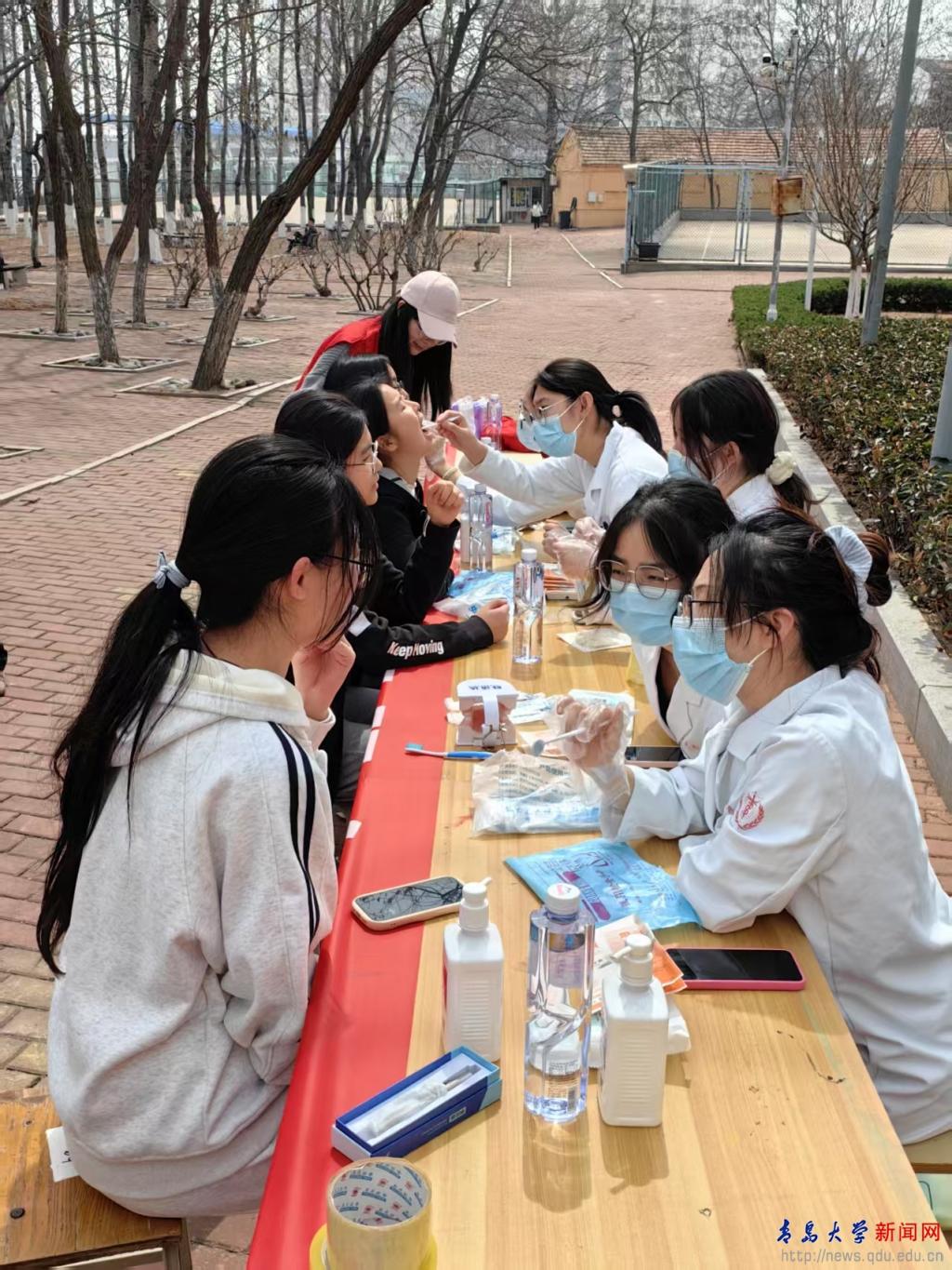新闻网讯 近日,口腔医学院“健齿行”志愿服务团在浮山校区仁园食堂前广场开展3·20“世界口腔健康日”校园口腔义诊活动,吸引大批师生前来咨询。