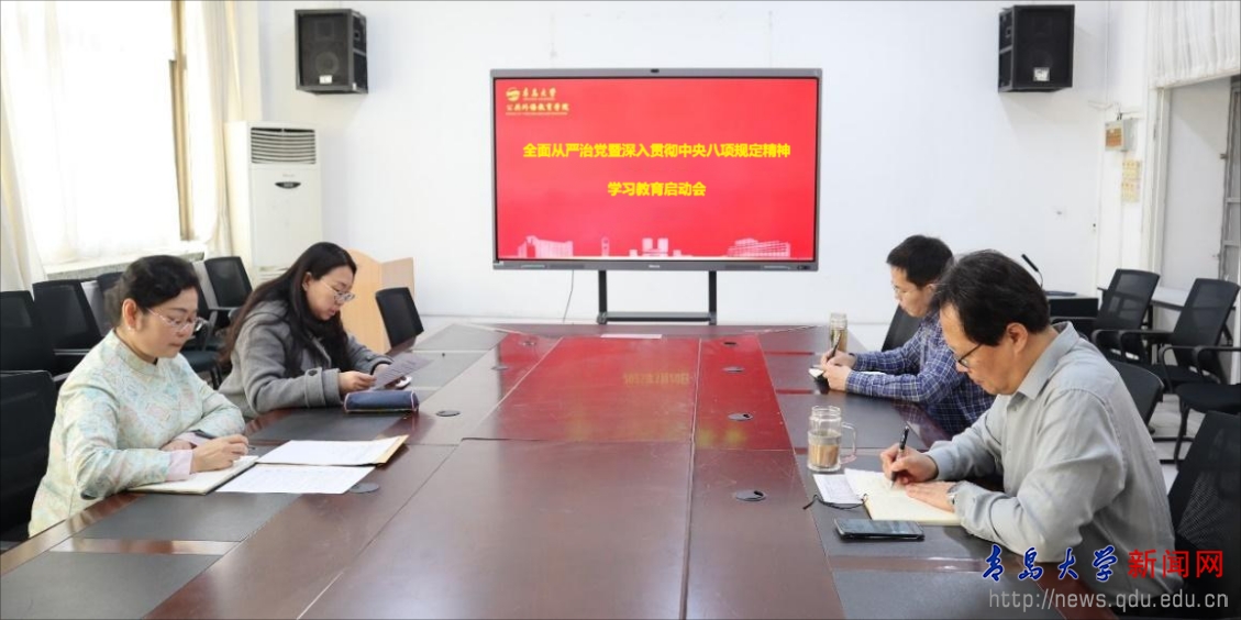 3月20日,学院党委在睿思楼202会议室召开全面从严治党暨深入贯彻中央八项规定精神学习教育启动会。学院党委书记甄淑华传达了学校全面从严治党暨党的建设工作领导小组(扩大)会议精神,,她强调,深入贯彻中央八项规定精神学习教育是今年的重要党建工作,要充分认识这次学习教育的重要意义,深入学习习近平总书记关于加强党的作风建设的重要论述和中央八项规定及其实施细则精神,要通过学院党委理论学习中心组学习、支部“三会一课”、主题党日活动等多种形式,全面落实学习教育各项工作安排,把思想和行动统一到党中央决策部署上来,坚持融入日常,抓在经常,推动作风建设与学院中心工作深入融合。