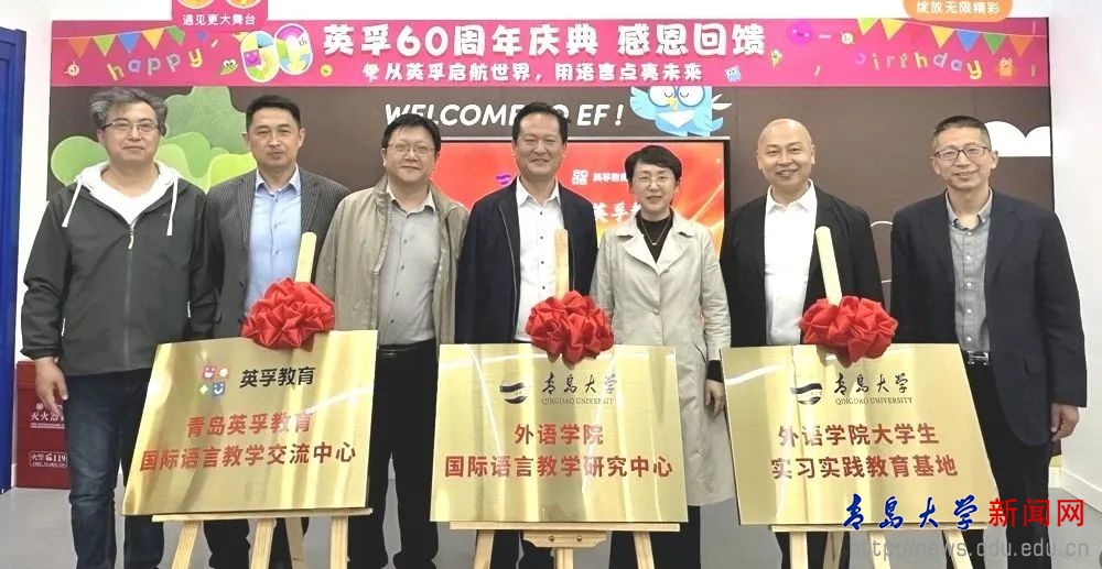 新闻网讯 4月24日,外语学院与青岛英孚教育人才培养战略合作签约授牌仪式圆满举行。外语学院党委书记陈崇研、院长卞建华,青岛英孚教育总校长刘焕强、校长于永伟出席签约授牌仪式。