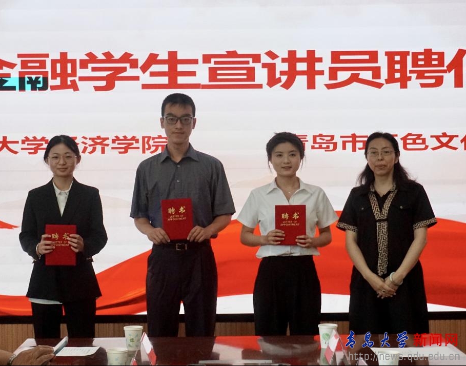 在热烈的掌声中,张辉与于文洁共同为“红色金融研究中心”揭牌,标志着这一重要研究平台正式启航。随后举行的专家聘任仪式上,首席金融评论主编孙芙蓉等获聘为专家委员会委员;青岛市红色文化研究会苗爱萍、王彪、李兰与beat365在线唯一官网经济学院姜伟、张笑、王凯华、张蕾受聘为红色金融思政课讲师。向昕蓓、李彦辰、刘桂伶三名同学被聘为首批红色金融学生宣讲员,充分体现了研究中心薪火相传的人才培养理念。