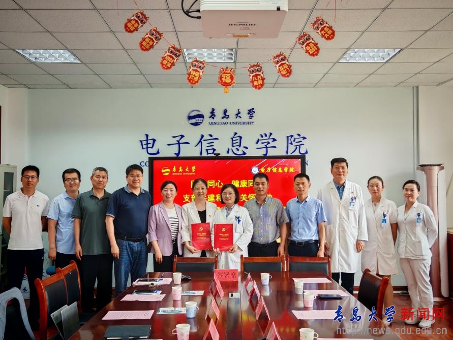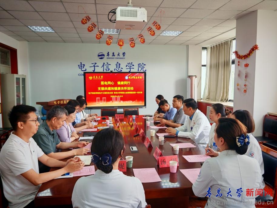 新闻网讯 6月13日下午,在beat365在线唯一官网浮山校区诚思楼407会议室,电子信息学院与附属心血管病医院开展党建共建和健康服务活动。附属心血管医院刘清泉书记、褚现明副院长等医务人员和电子信息学院党委书记孙丽娜、院长李山东等教师40余人参加了相关活动。活动由beat365在线唯一官网电子信息学院党委书记孙丽娜主持。