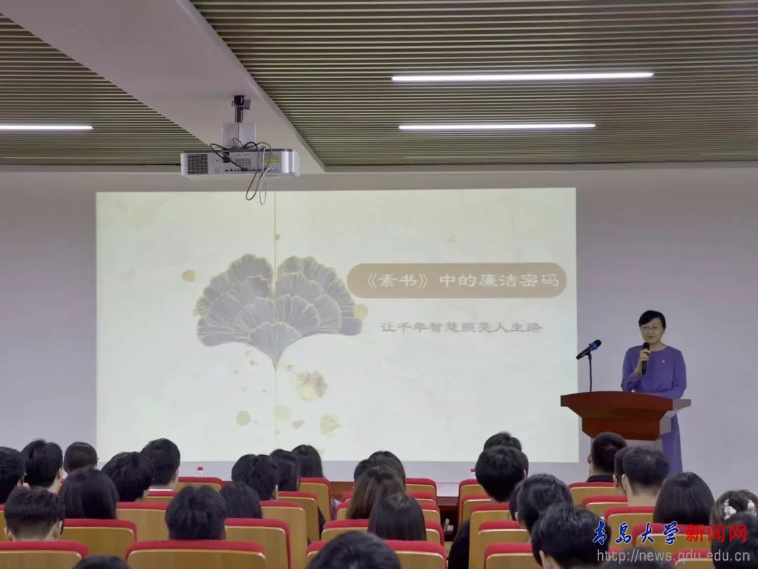 尼梅颉以“《素书》中的廉洁密码:让千年智慧照亮人生路”为主题的廉洁党课,强调同学们当以初心为灯塔,让清正之墨绘就坦荡人生,以担当之笔书写奋斗华章,在新时代的赛道上行稳致远,让青春航程始终闪耀廉洁之光。