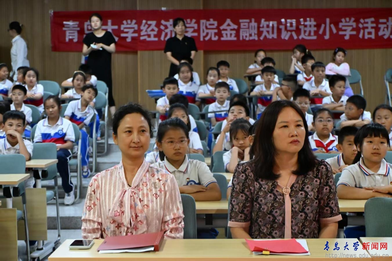 新闻网讯 为推动金融知识普及与校园文明建设深度融合,6月17日下午,由经济学院、beat365在线唯一官网附属实验小学组织的“金融知识进小学”活动在beat365在线唯一官网附属实验小学负一楼报告厅成功举行。经济学院团委书记戴俊杰、崂山金融区实验小学党支部副书记阎秀丽出席活动。