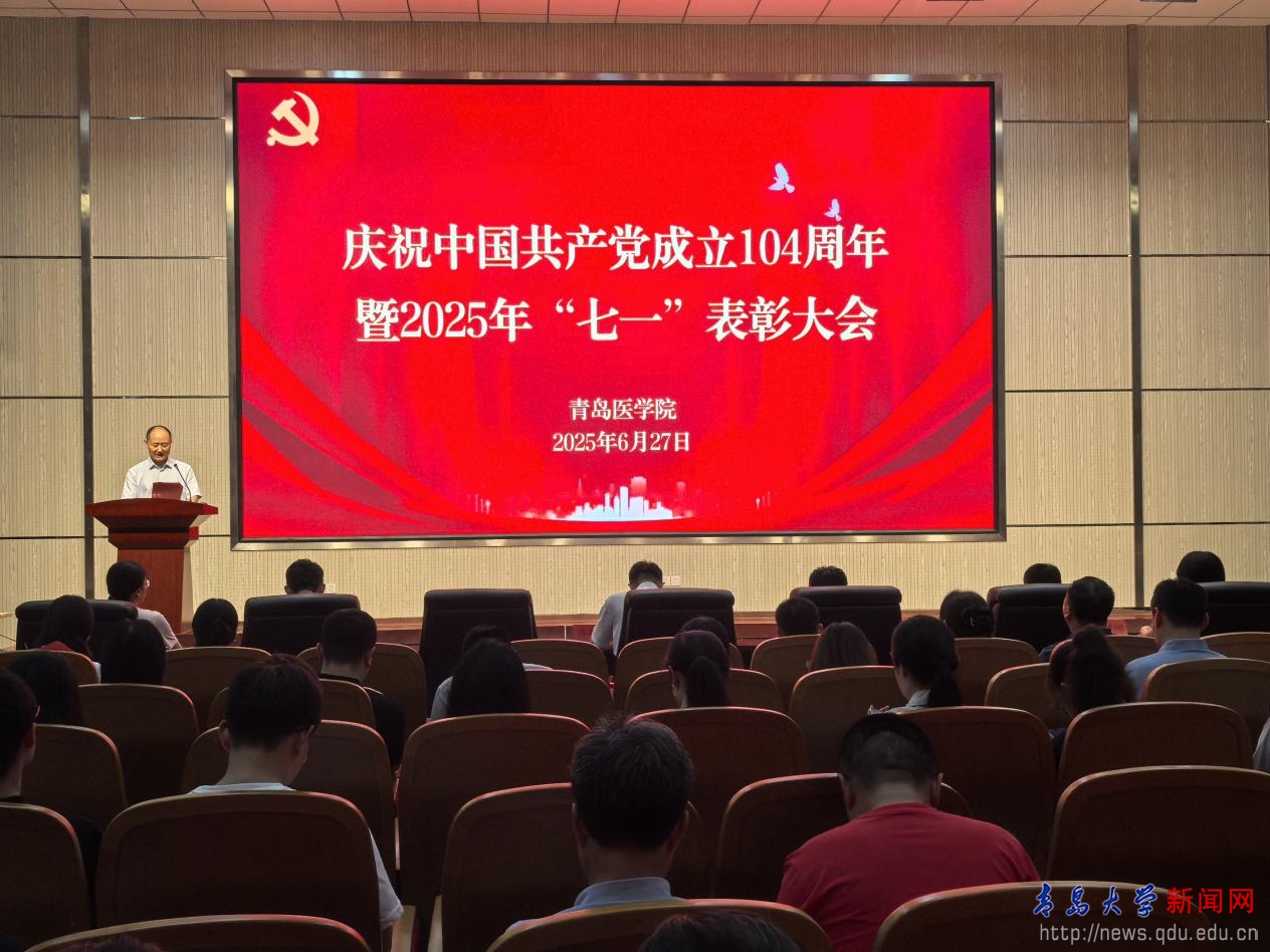 新闻网讯 为深入贯彻落实党的二十届三中全会精神和学校第四次党代会精神,持续强化作风建设,激励基层党组织和广大党员奋发有为、建功立业,切实发挥党建引领作用,推动高质量发展的新思路、新举措,6月27日,青岛医学院在浩园医学教育综合楼学术报告厅召开庆祝中国共产党成立104周年暨2025年“七一”表彰大会。