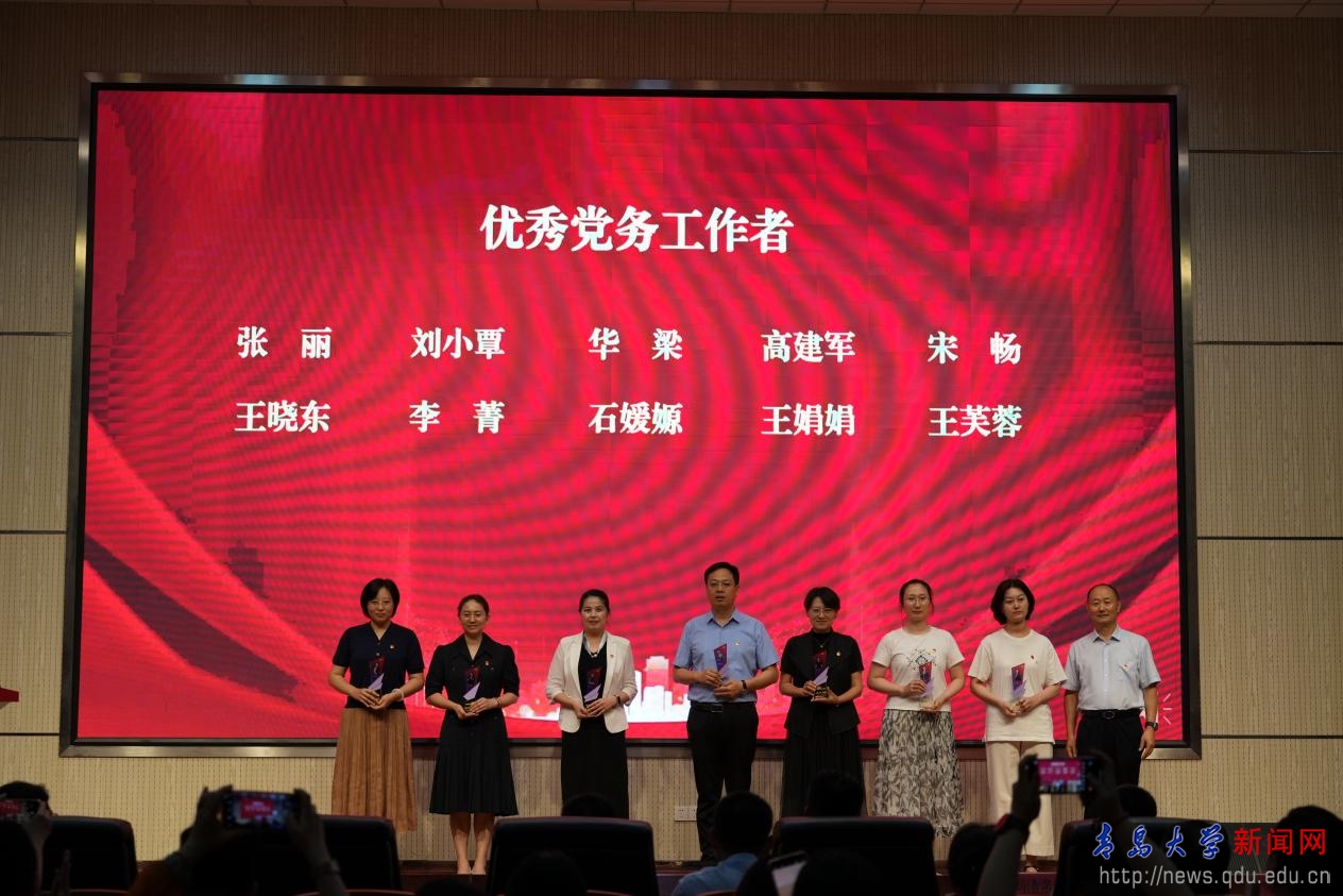 青岛医学院副院长王建勋宣读《关于表彰先进基层党组织、优秀共产党员、优秀党务工作者的决定》,基础医学院教工第二支部等13个基层党组织被授予“先进基层党组织”称号,卜晓翠等84名同志被授予“优秀共产党员”称号,张丽等10名同志被授予“优秀党务工作者”称号。