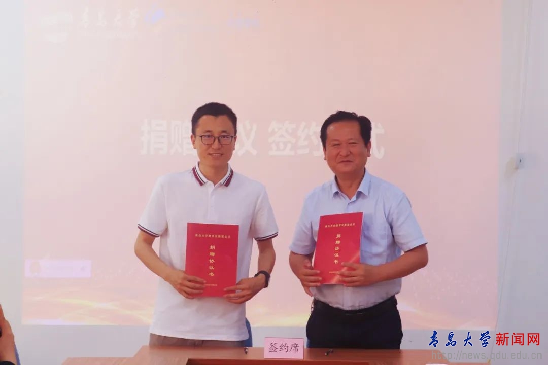新闻网讯 为构建校企资源共享平台,助力学生高质量就业及全面发展,7月3日下午,外语学院在浮山校区博文楼312室举行知行百思特教育科技集团“人才培养基地”签订暨教育基金捐赠仪式。知行教育董事长吴泽、青岛校区校长李兆君、人事经理邱梦雪、教师王金丽,外语学院党委书记陈崇研、院长卞建华以及外语学院学工办负责人、辅导员出席仪式。仪式由外语学院党委副书记于苗主持。