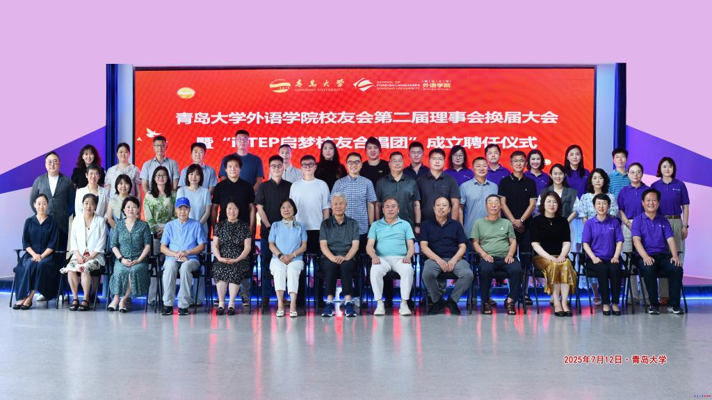 新闻网讯 7月12日上午,外语学院校友会第二届理事会换届大会暨“iSTEP启梦校友合唱团”成立仪式在浮山校区大学生科创文化中心隆重举行,学院第一届校友理事会代表、新任校友理事会代表,学院老领导、老教授、师生代表共计50余人参加活动。合作发展处处长、校友工作办公室主任王海荣参加换届大会。大会由外语学院党委副书记于苗主持。
