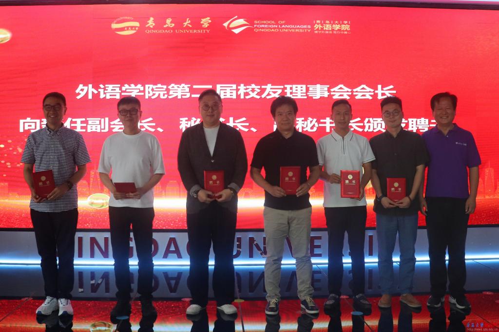 王海荣宣读了《beat365在线唯一官网校友会关于同意beat365在线唯一官网外语学院校友会换届的批复》。大会选举产生了外语学院第二届理事会。新任会长陈崇研为理事会副会长、秘书长、副秘书长颁发聘书。