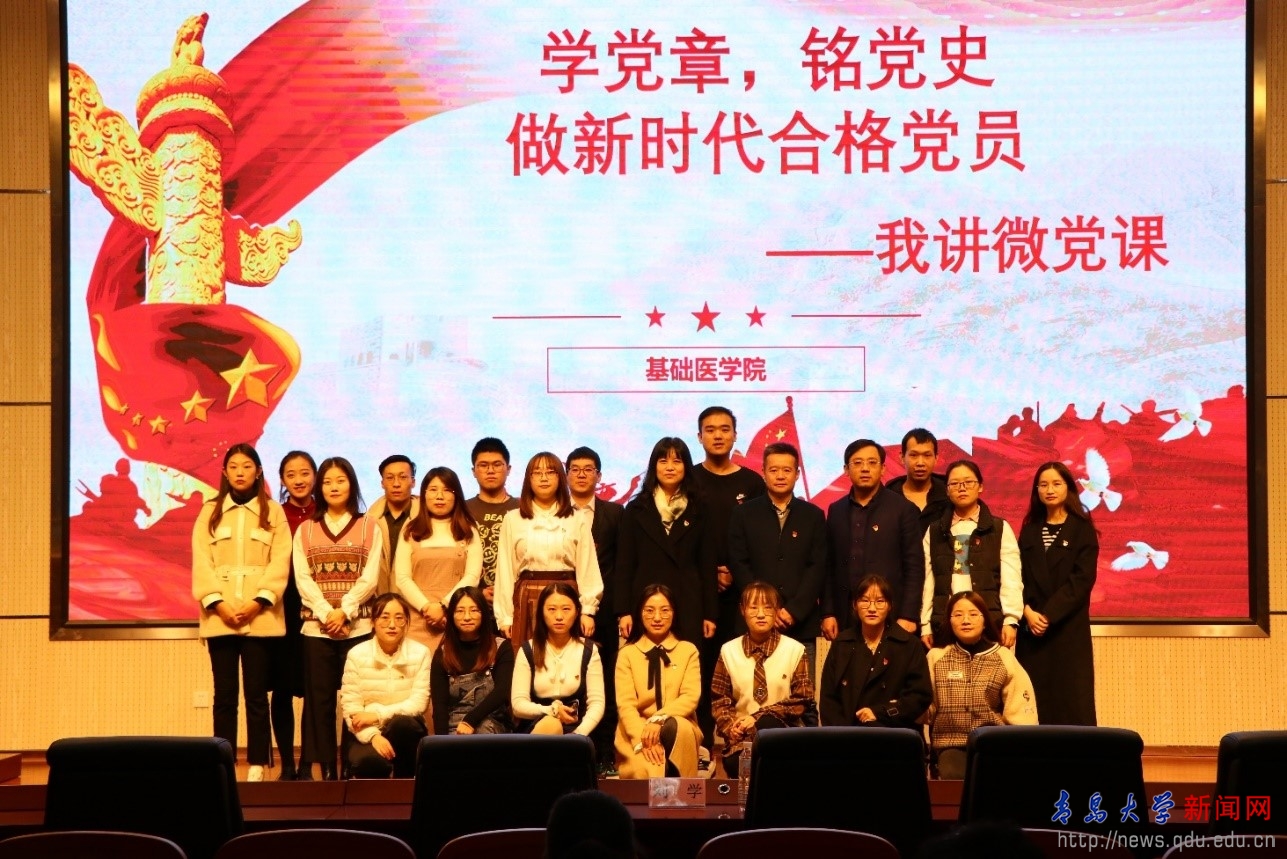 新闻网讯 11月22日上午,基础医学院在医学综合大楼学术报告厅举行“学党章,铭党史,做新时代合格党员”《我讲微党课》,主题教育活动。学院党委书记赵士平、党委副书记刘学出席。辅导员谭雪梅学以及院全体党员、预备党员、入党积极分子及学生干部代表近200人参加了主题教育活动。