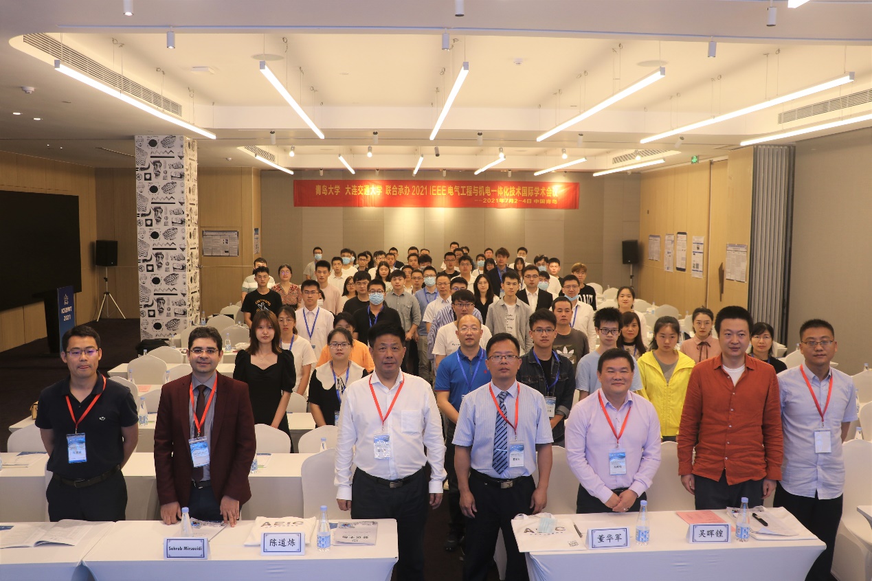 新闻网讯 7月3日,由IEEE消费电子协会与AEIC学术交流中心联合主办,由beat365在线唯一官网电气工程学院和大连交通大学机械工程学院联合承办的2021IEEE电气工程与机电一体化技术国际学术会议(ICEEMT 2021)在青岛兰欧酒店隆重召开,来自西安交通大学,浙江大学,华北电力大学,山东大学,北京航空航天大学,重庆大学,大连理工大学,苏州大学等高校的百余位中外学者参加会议,共同探讨电气工程与机电一体化领域的前沿动态与发展趋势。