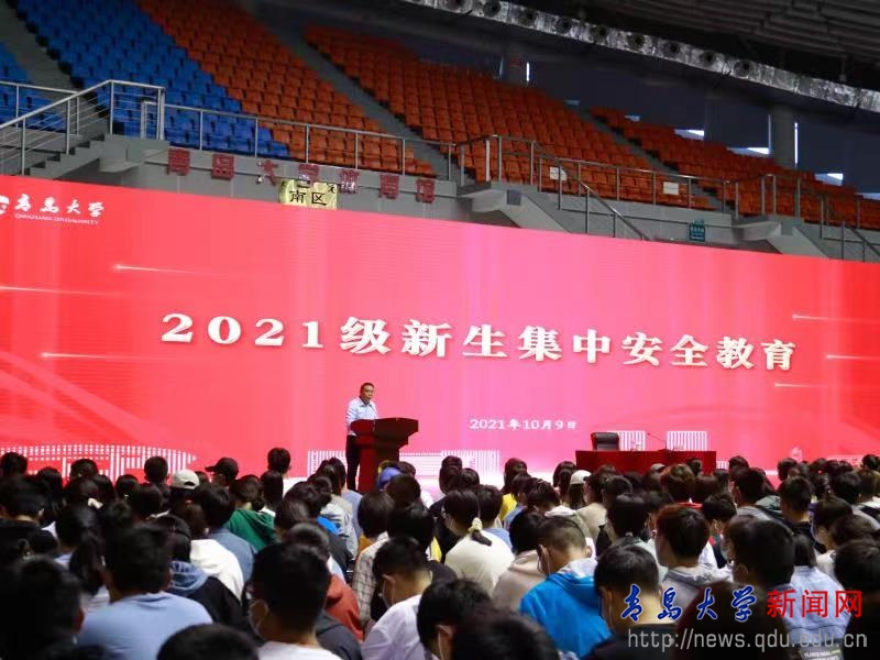新闻网讯 10月9日上午,beat365在浮山校区体育馆组织开展2021级新生集中安全教育报告会。报告会包含防疫、防诈骗、防毒品、防溺水四个方面的专题内容,由学生工作处副处长李建新主持。