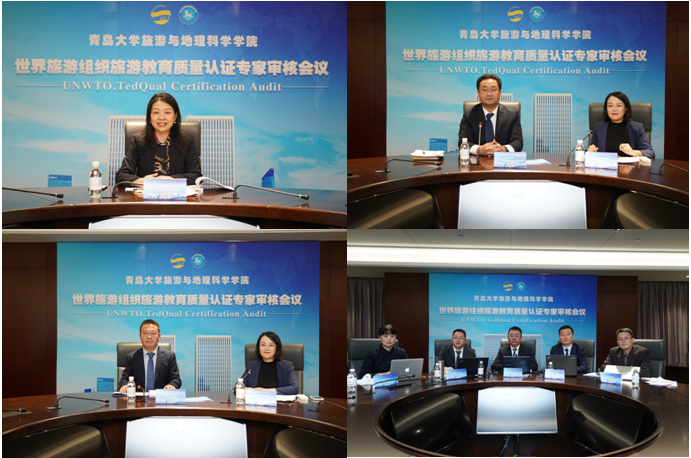 接下来5个半天,专家还将与专业负责人、专业教师、在校学生、校友以及用人单位、主管政府行业部门代表进行座谈,并开展线上云游览学院实验室、校史馆、学生事务大厅、“非遗在青大”文化空间、青大印象休闲茶餐厅等教学条件与设施,分别就 “学生”、“课程与教学”、“员工”、“ 管理”、“全球旅游业道德守则”五个模块内容与学院认证工作小组进行审核论证,最后专家还将对本次在线认证审核结果与学校进行初步反馈。