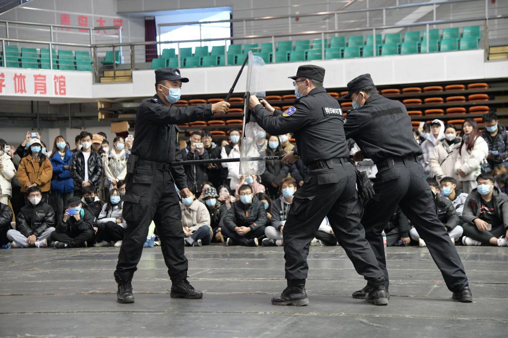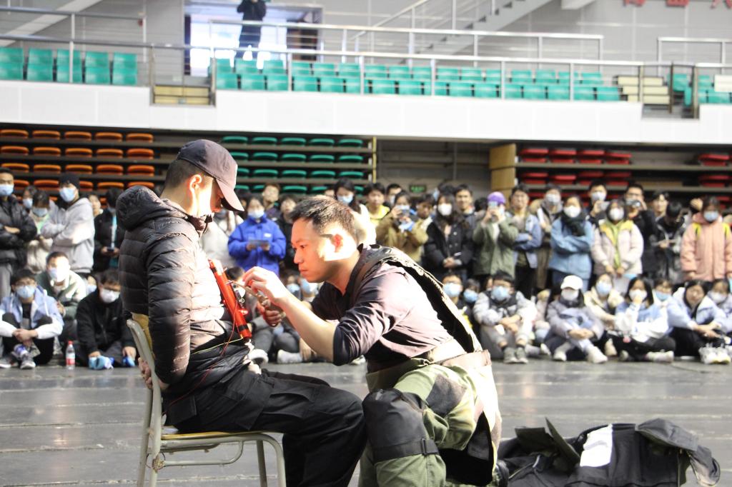 新闻网讯 为进一步落实党史学习教育“我为师生办实事”活动,健全学校安全应急联动机制,增强学校应对处置各类突发事件的指挥决策和统筹协调能力,普及安全避险知识,提高学生和教职工自救互救能力,11月8日下午,由党委宣传部、党委学生工作部、党委保卫部联合青岛市公安局、崂山公安分局在校体育馆组织开展校园反恐、反诈、网络安全教育培训暨校园反恐应急处置演练。