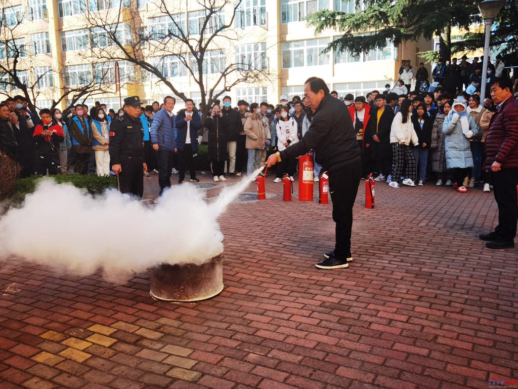 新闻网讯 近日,学校组织开展“消防演练+体验”课。校党委常委、副校长刘彩云出席活动,学生工作处、安全管理处负责人及来自相关学院包括留学生在内的近200名师生参加了此次演练。
