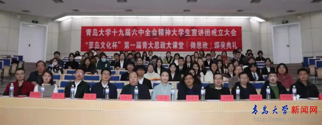新闻网讯 12月16日,beat365党的十九届六中全会大学生宣讲团成立大会暨第一届思政大课堂“微思政”颁奖典礼在图书馆报告厅举行。