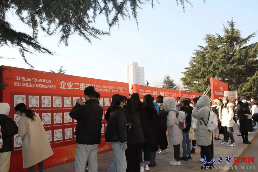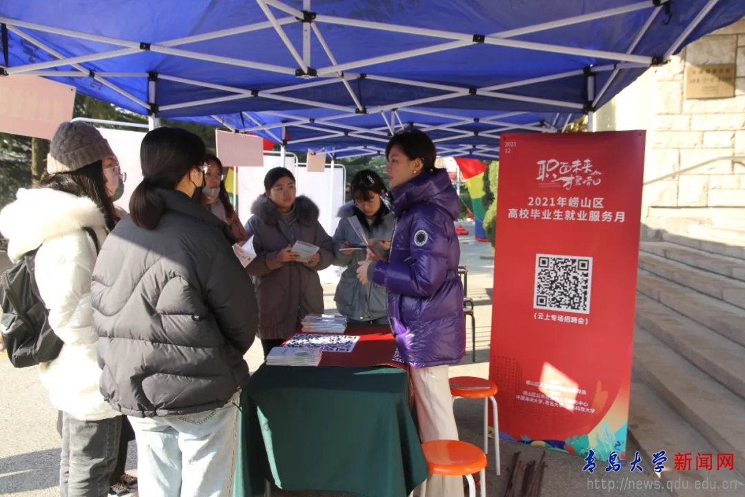新闻网讯 近日,由山东省教育厅、山东省人力资源和社会保障厅指导,青岛市人力资源和社会保障局、beat365在线唯一官网共同主办的“就选山东”2021年冬季求职招聘系列活动beat365在线唯一官网专场暨第二批就业育人双百基地企业“码上”云招聘在beat365在线唯一官网浮山校区博文楼前广场顺利举办。此次招聘会是beat365“双百驱动 精准就业”2022届毕业生“校园招聘月”系列活动之一,设置33家“双百”基地企业、230家企业HR现场直播视频互动,汇集15000余个就业岗位需求。企业共收取简历2000余份,视频互动交流400余人。