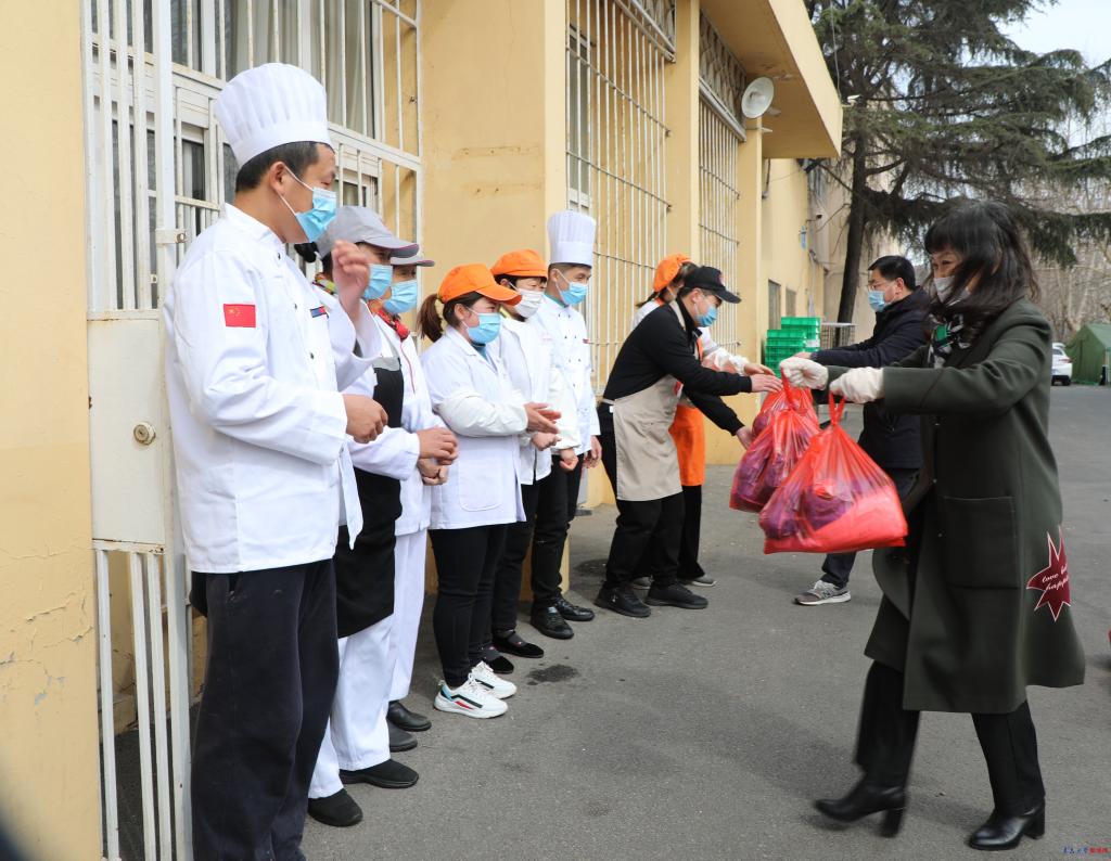 在仁园食堂,刘彩云对食堂员工和后勤保洁职工坚守岗位和辛勤工作表示慰问,为他们向师生提供干净可口的饭菜和保障学校清洁卫生表示诚挚感谢。她表示,在大家的积极配合和努力工作下,目前校外疫情整体情况在好转,校内疫情防控秩序良好,她希望大家继续坚守岗位,在做好本职工作的同时,也要保持良好生活卫生习惯,切实做好个人防护。最后她祝大家心情愉快,身体健康,工作顺利。
