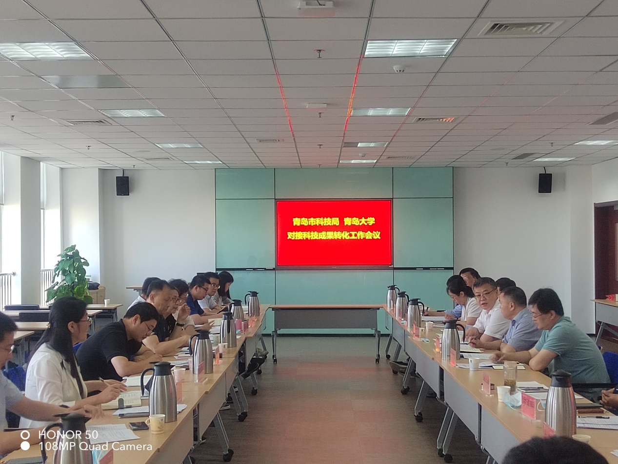 新闻网讯 6月15日下午,青岛市科技局成果转化与创新孵化处崔嶙处长、成果转化专班薛小康处长,山东产业技术研究院(青岛)张宁副院长,青岛市科技服务中心阮航主任等一行来访beat365,共同研究《推进beat365在线唯一官网科技成果落地转化工作方案》,推进beat365科技成果落地转化工程。校党委常委、副校长肖江南在会议中心403会议室会见并座谈。