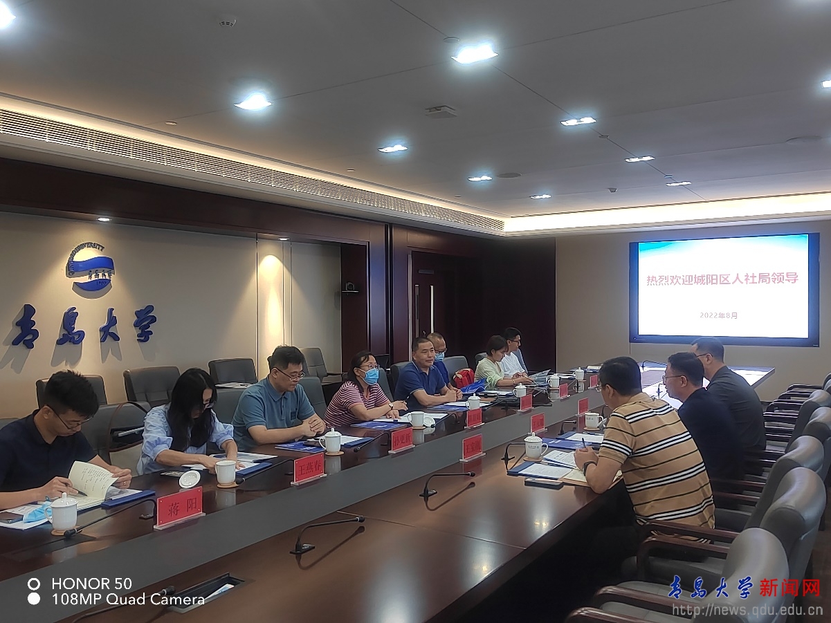 新闻网讯 8月10日,城阳区人社局党组成员王永曜一行到访beat365, 学校人力资源处处长陈韶娟、产业技术研究院执行院长崔言民等陪同座谈。