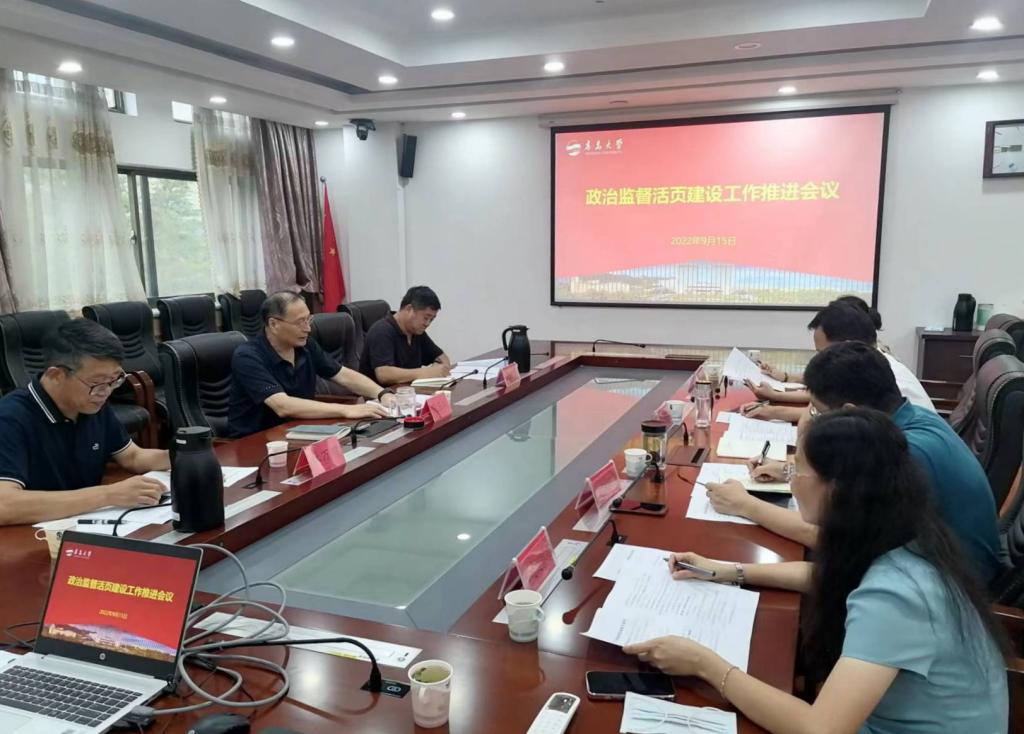 新闻网讯 9月15日下午,学校政治监督活页建设工作推进会议在办公楼第三会议室召开。校党委常委、纪委书记、省监委驻beat365在线唯一官网监察专员范玉斌,校党委常委、宣传部部长吴世珍出席会议。校纪委副书记林万顺主持会议。