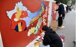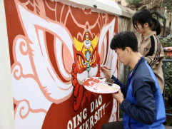 此次活动共绘制十五幅作品,青大青年高效有序、有条不紊地开展墙绘创作,构图、起形、调色、上色、精修,反复打磨每一面墙绘、认真勾勒每一个细节,让素净的外墙变得生动鲜活。