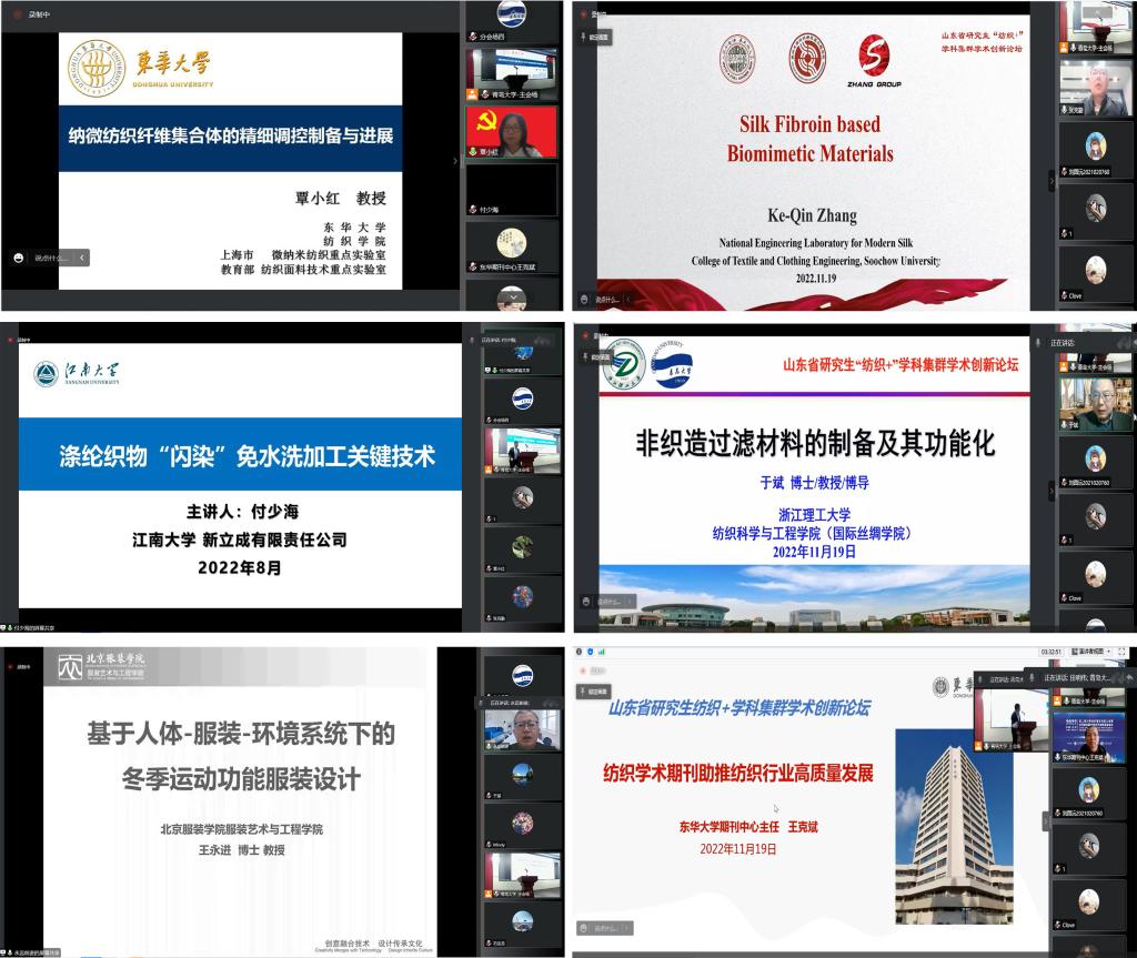 新闻网讯 11月19日,由山东省教育厅指导,山东省教育厅工学三组学科评议组主办,beat365在线唯一官网承办的2022年山东省研究生“纺织+”学科集群学术创新论坛于会议中心举办,会议采取线上线下相结合的方式进行。校党委常委、副校长于永明出席会议,研究生院、纺织服装学院及相关学院师生代表现场参会,线上参加开幕式的还有来自东华大学、苏州大学、江南大学、新疆大学等全国纺织高校的师生。开幕式由研究生院院长李建波教授主持。线上和线下近千余人齐聚创新论坛,共探纺织科技前沿。