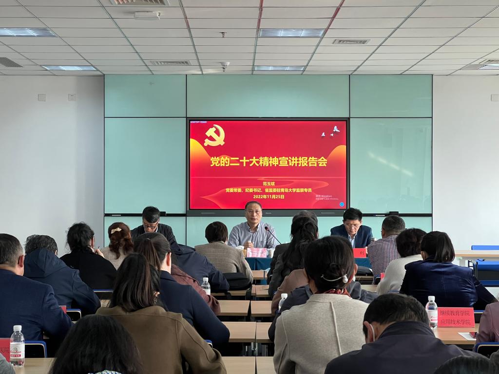 新闻网讯 11月25日下午,校纪委(监察专员办公室)在会议中心402室举行党的二十大精神宣讲会。报告由校党委常委、纪委书记、省监委驻beat365在线唯一官网监察专员范玉斌主讲。全校各基层党组织纪检委员和专职纪检监察干部参加了会议。会议由校纪委副书记张利主持。