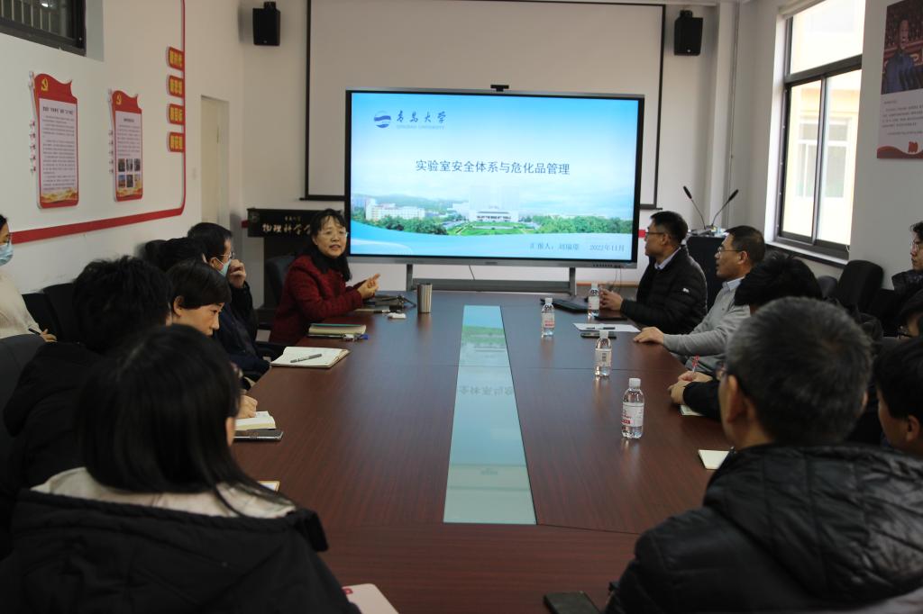 新闻网讯 为了深入学习贯彻党的二十大精神,树立安全发展理念,提升实验室本质安全建设水平,11月30日上午,物理科学学院邀请资产与实验室管理处副处长张庆一行来院为师生开展实验室安全教育培训。物理科学学院党委书记郝伟、院长滕冰出席培训会。会议由副院长龙云泽主持。