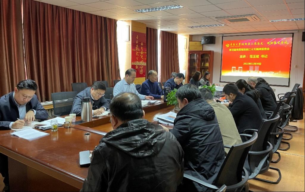 范玉斌表示,学习宣传贯彻党的二十大精神,是当前及今后一段时期首要的政治任务,党员领导干部要带头学,学以致用。一是注重增强学习的自觉性和能动性,自觉用习近平新时代中国特色社会主义思想武装头脑、改造世界观,坚持人民至上的根本要求,以师生为本。二是注重学以致用,学习与工作相结合,切实把学习落实到指导工作、推动工作和提升工作上。