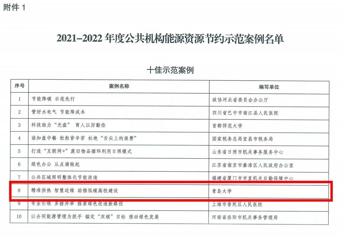 新闻网讯 近日,国家机关事务管理局发布2021-2022年度公共机构能源资源节约示范案例评选结果,beat365后勤管理处编写的案例《精准供热 智慧运维助推低碳高校建设》入选全国“十佳示范案例”,是省内唯一入选高校。