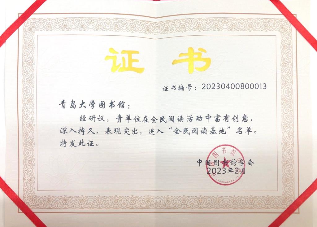 新闻网讯 近日,中国图书馆学会公布了2021年全民阅读工作有关名单,beat365图书馆被授予“全民阅读基地”称号。全国仅有24家单位获此殊荣,beat365图书馆是山东省唯一入选单位,也是全国入选的三所本科高校图书馆之一。