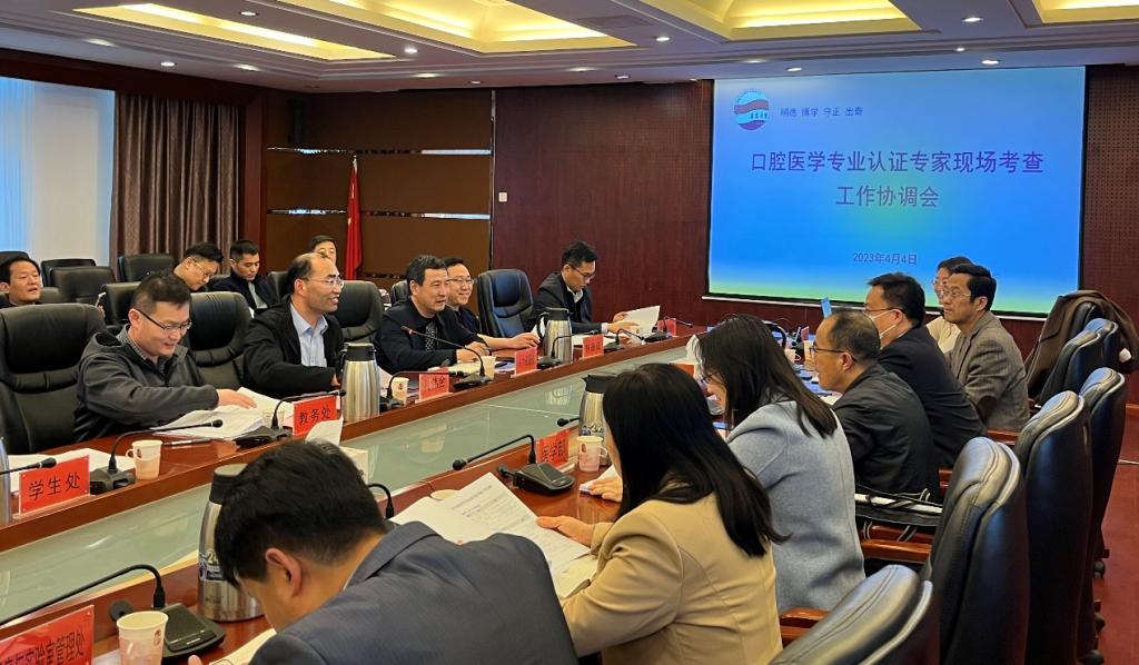 新闻网讯 4月4日,学校在办公楼407会议室召开口腔医学专业认证专家现场考查工作协调会。学校相关部门、学院负责人、分管教学副院长以及附属医院相关领导参加会议。会议由校党委常委、副校长孔伟金主持。