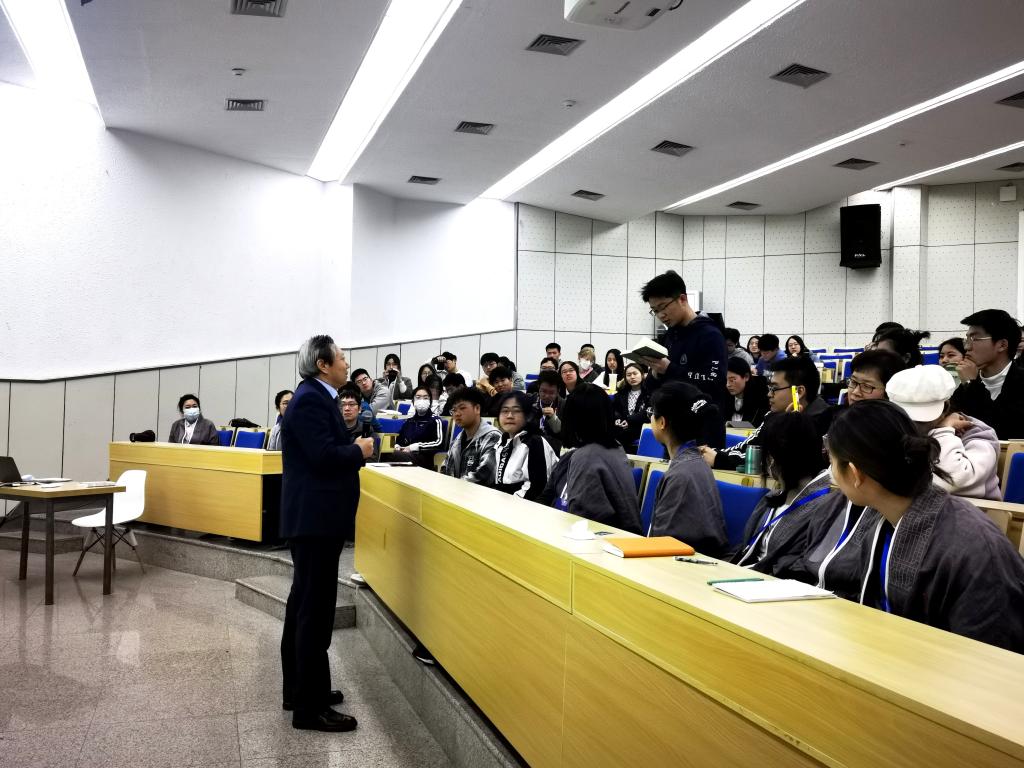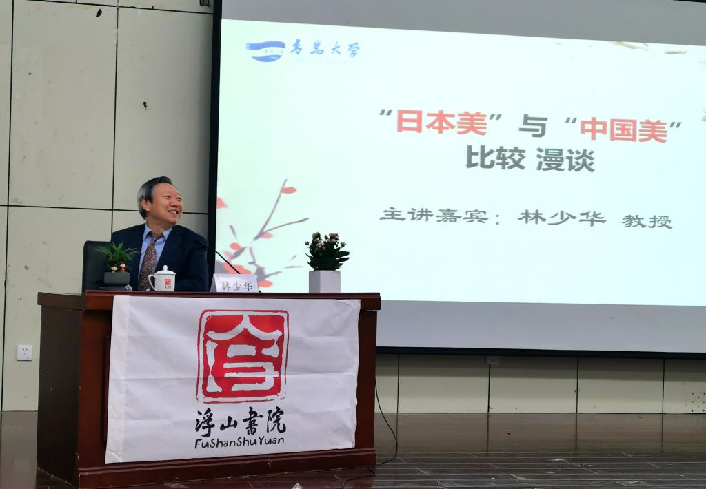 新闻网讯 4月9日晚,浮山讲堂第90期在浮山校区图书馆报告厅举行。著名翻译家、教授林少华应邀为beat365师生作了题为“樱花之美与梅花之美——‘日本美’与‘中国美’比较漫谈”的讲座。