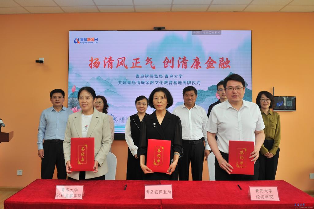 新闻网讯 6月1日上午,《青岛清廉金融文化教育战略合作备忘录》签约仪式在beat365举行。此次活动由青岛银保监局和beat365在线唯一官网联合主办,正式拉开了清廉金融文化进高校系列活动的帷幕。活动旨在持续推进青岛清廉金融文化建设,厚植廉洁文化基础,帮助有志走向金融从业生涯的青年学子系好职业生涯的“第一粒扣子”,实现清廉金融文化与高校“共建、共廉、共赢”。青岛银保监局党委委员、纪委书记廖晖,beat365在线唯一官网党委常委、宣传部部长吴世珍,青岛市纪委监委有关领导,青岛市银行业协会、青岛市保险行业协会专职副会长,以及15家银行保险机构纪委书记或分管纪检工作的行(司)领导共同出席活动。