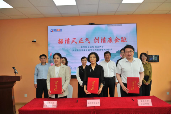 活动现场,经济学院、政治与公共管理学院与青岛银保监局纪委签署了《青岛清廉金融文化教育战略合作备忘录》,廖晖与吴世珍共同为“青岛清廉金融文化教育基地”揭牌,15家机构在校园内进行了清廉金融文化宣传路演。下一步,合作各方将充分发挥各自在政策、资源、组织等方面优势,建立战略合作关系,共建“青岛清廉金融文化教育基地”;探索双向开展青岛清廉金融文化教学实践及从业培训,研究谋划将清廉金融文化相关内容纳入beat365在线唯一官网学生选修课程,促进清廉思想在金融行业、在beat365在线唯一官网校园蔚然成风;联合开展青岛清廉金融文化建设系列课题研究,合作编制《清廉金融文化读本》,服务青岛清廉金融文化高质量建设,合力打造具有青岛特色的清廉金融品牌。