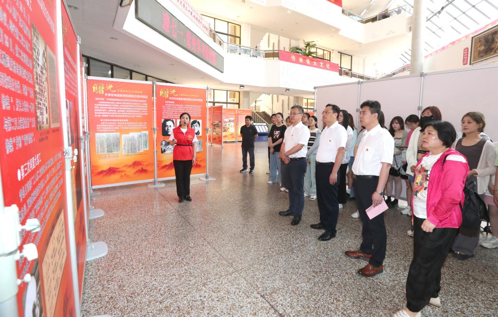 肖江南代表学校致辞。他表示,当前学习贯彻习近平新时代中国特色社会主义思想主题教育正如火如荼开展。本次活动是对习近平总书记关于“红色基因就是要传承”“要推动党史学习教育常态化长效化”等重要指示精神的贯彻落实,是高校立德树人的使命所在。他强调,此次展览是一堂意义深远的大思政课、党课。各学院党委要结合正在进行的学习贯彻习近平新时代中国特色社会主义思想主题教育,积极组织师生、党员参观展览,接受教育,锤炼党性。
