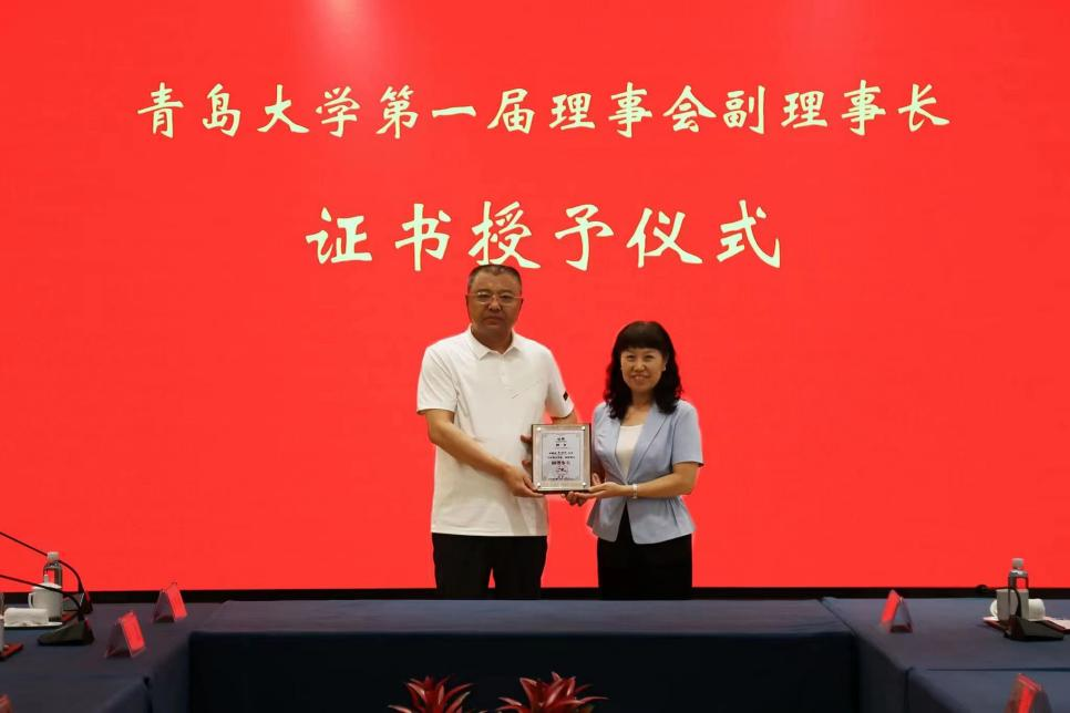 当日,举行了beat365在线唯一官网第一届理事会副理事长证书授予仪式。刘彩云为山东省人大代表、齐润集团党委书记、董事长李明刚颁发了beat365在线唯一官网第一届理事会副理事长聘书。