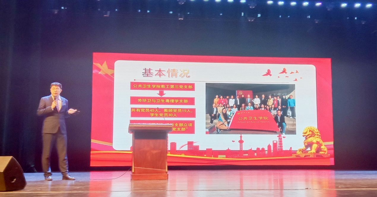 公共卫生学院劳环卫与卫生毒理学党支部依托学科基础设立,共有党员45人,其中教师党员15人,学生党员30人。在校党委和院党委的坚强领导下,该支部经过不断学习和探索,逐渐形成六个特色工作机制,即:“党建+学术”相融共生创实效,“思政+教学”育人阵地夯基石,“人才+科研”明岗定责争佳绩,“红色+蓝色”结合专业强党性,“线上+线下”全线推动干工作,“实践+服务”多种形式强学习,“老师+学生”教学相长聚力量,党建与业务工作相融互促,成效明显,已于2022年入选第二批全省党建工作样板支部培育创建单位。