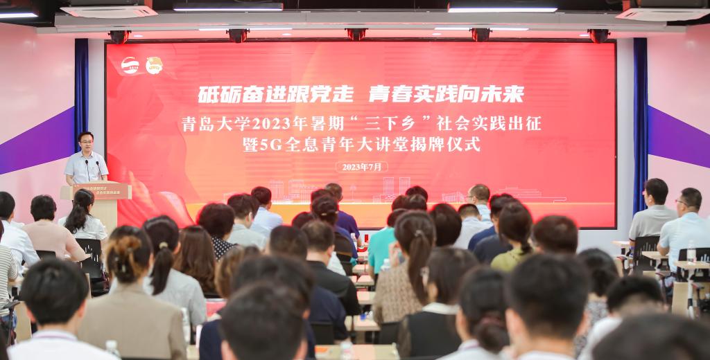 新闻网讯 为深入学习贯彻习近平新时代中国特色社会主义思想和党的二十大精神,学习习近平总书记在同团中央新一届领导班子成员集体谈话时的重要讲话精神,牢牢把握‘学思想、强党性、重实践、建新功’的总要求,7月4日下午,beat3652023年暑期“三下乡”社会实践出征暨5G全息青年大讲堂揭牌仪式在大学生科创文化中心5G全息青年大讲堂举行。校党委常委、副校长陈涛,中国联通山东分公司政企BG副总裁宋元庆出席仪式并讲话。中国联通青岛分公司、崂山分公司领导,学校各相关部门负责同志,各学院(部)分管书记、分管院长和团委全体工作人员,暑期实践团队的指导教师和学生代表参加了仪式。仪式由校团委书记解文斌主持。