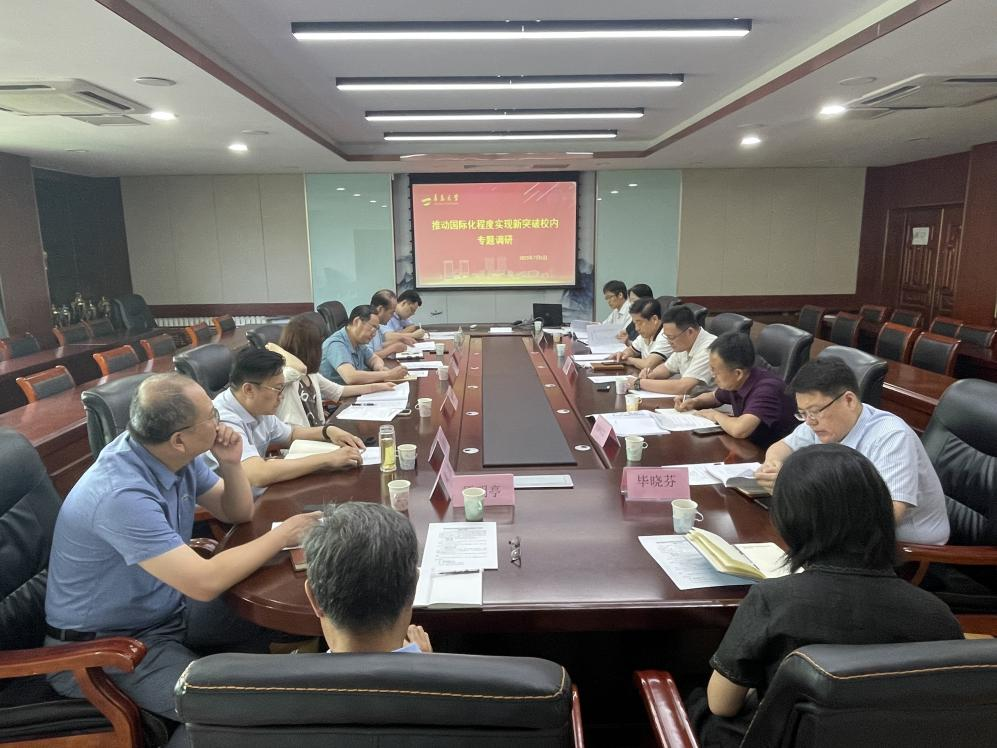 新闻网讯 7月5日,校党委常委、副校长李军深入经济学院、政治与公共管理学院、商学院、纺织服装学院和自动化学院,开展“推动国际化程度实现新突破”校内专题调研,了解学院在师资队伍国际化、人才培养国际化、学术研究国际化、校园环境国际化、服务上合经贸学院建设等方面的情况和重点问题。