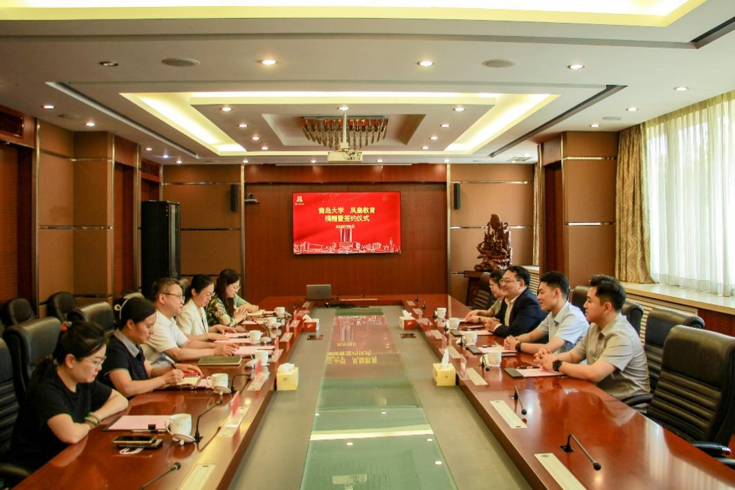 新闻网讯 7月5日下午,凤皇教育捐赠暨签约仪式在浮山校区行政办公楼第五会议室举行。凤皇教育校长王宝玉、副校长宋健,beat365在线唯一官网党委副书记肖江南参加活动。捐赠仪式由合作发展处处长、校友工作办公室主任、校教育发展基金会副理事长兼秘书长张燕主持。