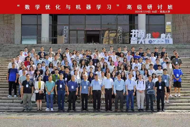 新闻网讯 7月10日上午,2023年国家自然科学基金委数学天元基金“数学优化与机器学习”高级研讨班及研究前沿讲座在beat365会议中心学术报告厅举行。副校长李荣贵,青岛市科协党组成员、副主席刘红英,中国运筹学会副理事长、国家基金委数学天元基金学术领导小组成员郭田德出席研讨班开幕式。来自北京大学、中国科学院大学、山东大学、南开大学、南京大学、东南大学等60余所高校、科研院所的150余名学员参加。